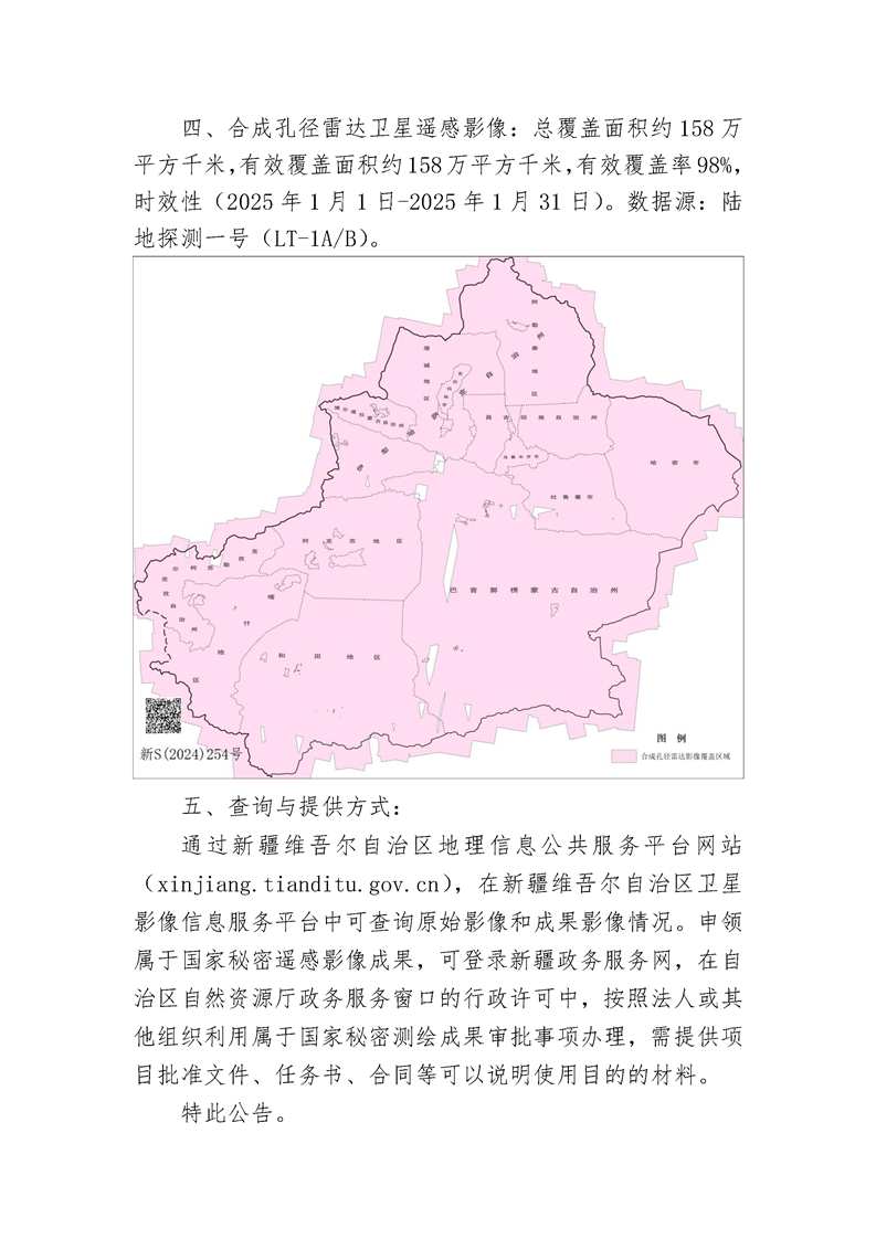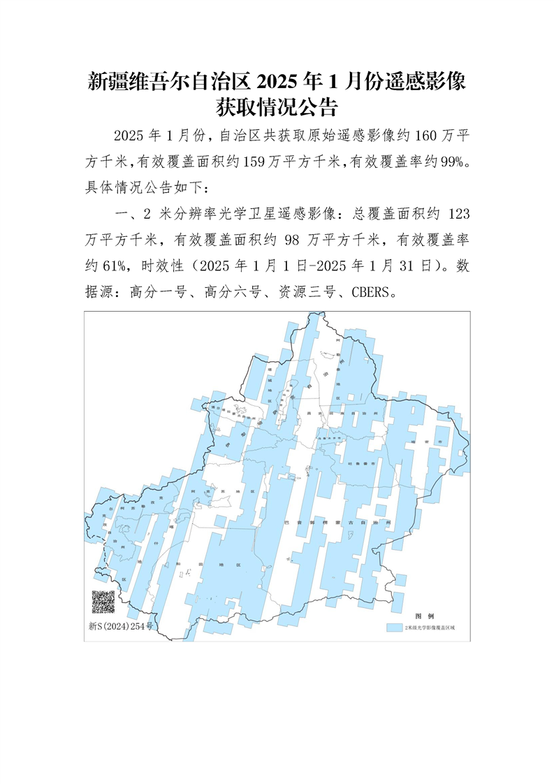 新疆维吾尔自治区2025年1月份遥感影像获取情况公告